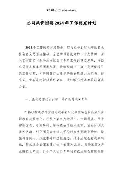 / 公司共青团委2024年工作要点计划