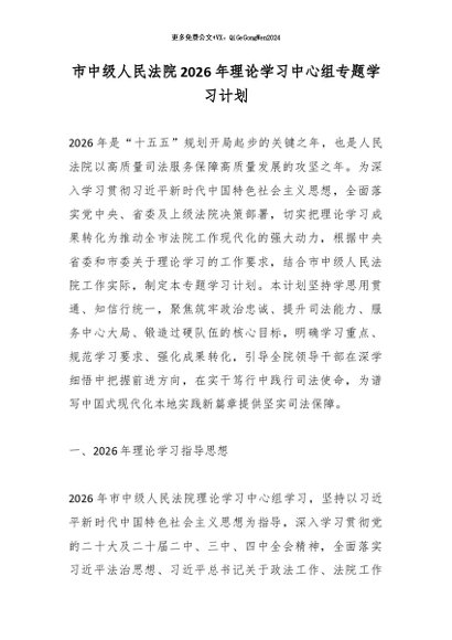 / 市中级人民法院2026年理论学习中心组专题学习计划