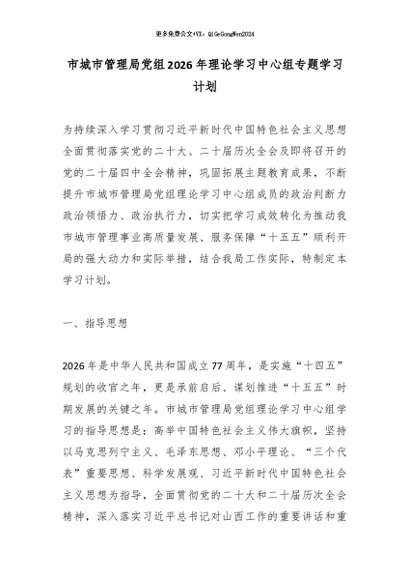 / 市城市管理局党组2026年理论学习中心组专题学习计划
