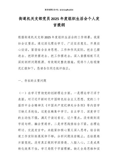 / 街道机关支部党员2025年度组织生活会个人发言提纲
