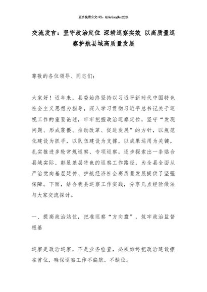 / 交流发言:坚守政治定位 深耕巡察实效 以高质量巡察护航县域高质量发展