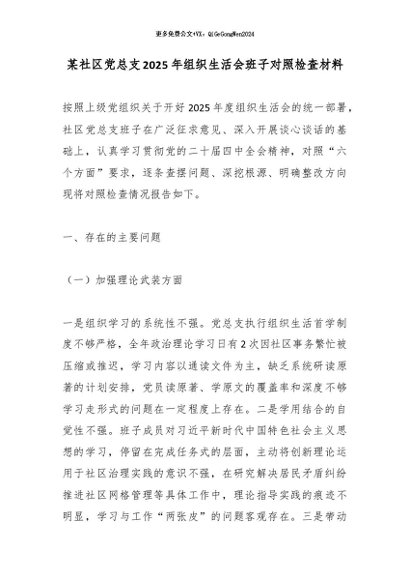 / 某社区党总支2025年组织生活会班子对照检查材料