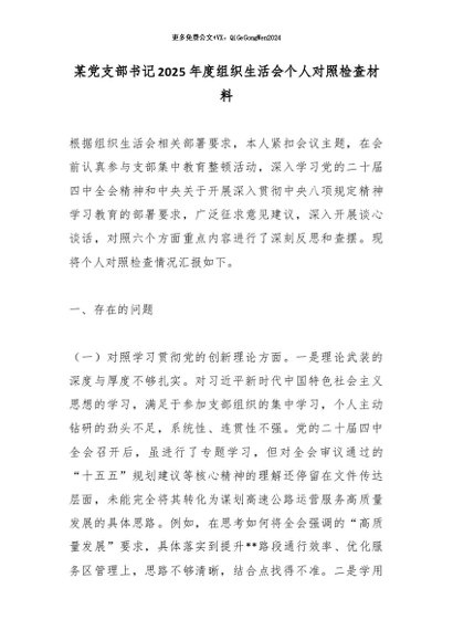 / 某党支部书记2025年度组织生活会个人对照检查材料