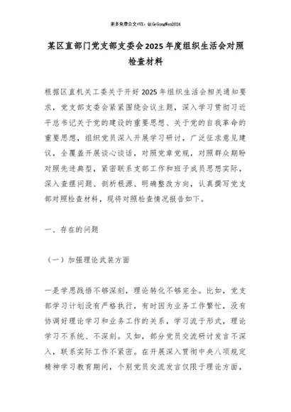 / 某区直部门党支部支委会2025年度组织生活会对照检查材料