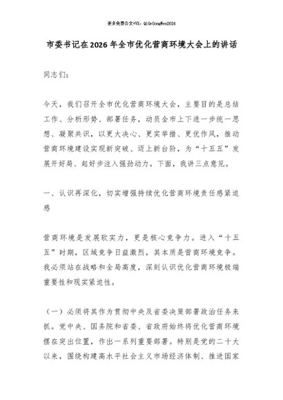 / 市委书记在2026年全市优化营商环境大会上的讲话