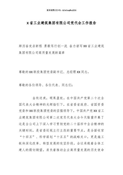 / X省工业建筑集团有限公司党代会工作报告