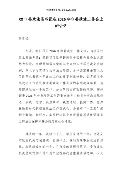/ XX市委政法委书记在2026年市委政法工作会上的讲话5