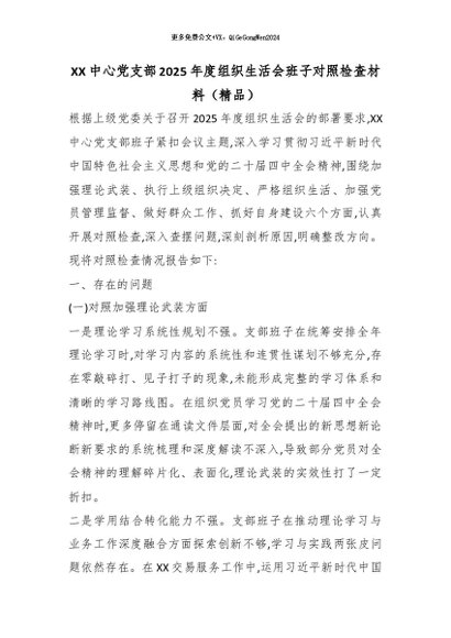 / XX中心党支部2025年度组织生活会班子对照检查材料(精品)