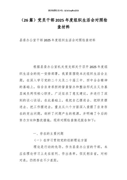 / (26篇)党员干部2025年度组织生活会对照检查材料