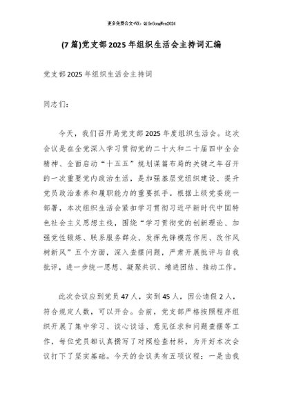 / (7篇)党支部2025年组织生活会主持词汇编