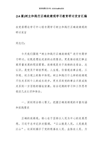 / (14篇)树立和践行正确政绩观学习教育研讨发言汇编