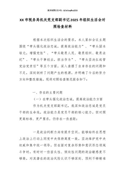 / XX市税务局机关党支部副书记2025年组织生活会对照检查材料