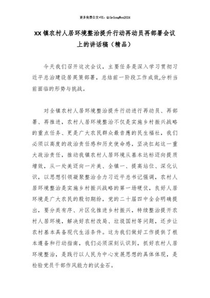 / XX镇农村人居环境整治提升行动再动员再部署会议上的讲话稿(精品)