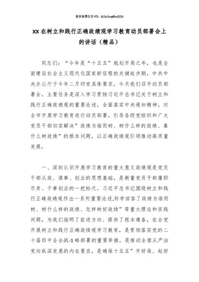 / XX 在树立和践行正确政绩观学习教育动员部署会上的讲话(精品)