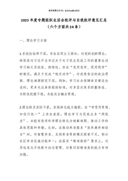 / 2025年度专题组织生活会批评与自我批评意见汇总(六个方面共24条)