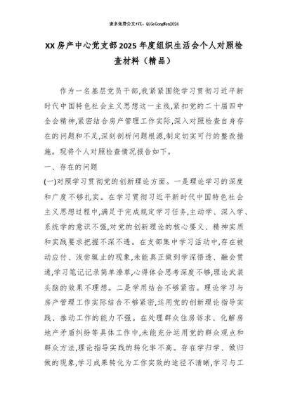 / XX房产中心党支部2025年度组织生活会个人对照检查材料(精品)