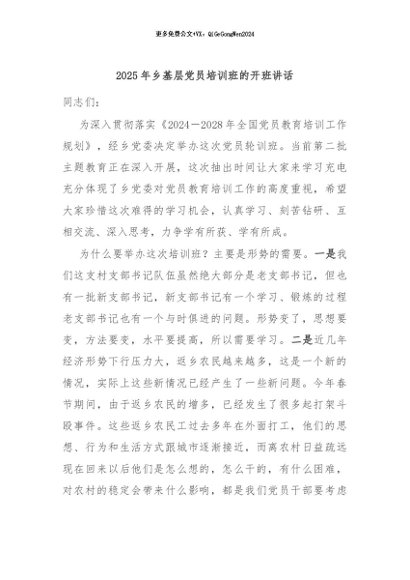 / 2025年乡基层党员培训班的开班讲话