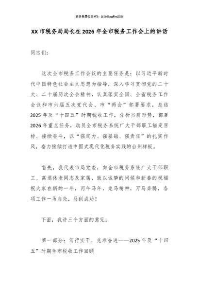/ XX市税务局局长在2026年全市税务工作会上的讲话
