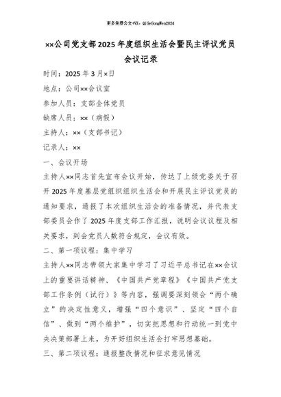/ ××公司党支部2025年度组织生活会暨民主评议党员会议记录