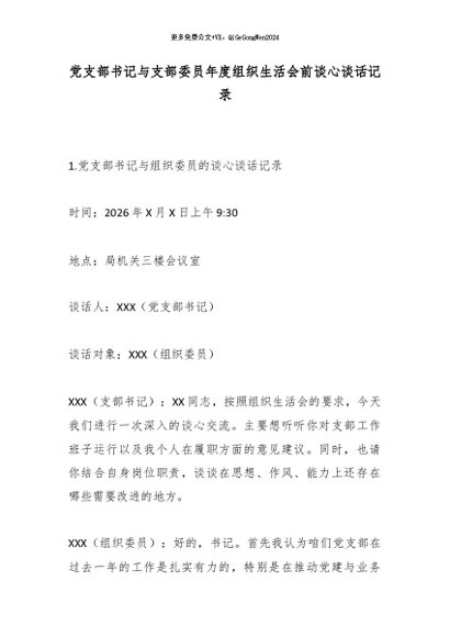 党支部书记与支部委员年度组织生活会前谈心谈话记录