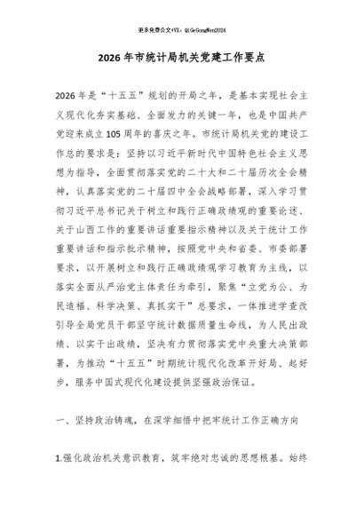 / 2026年市统计局机关党建工作要点