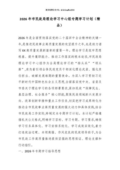 / 2026年市民政局理论学习中心组专题学习计划(精品)