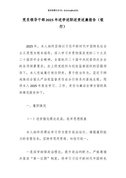 / 党员领导干部2025年述学述职述责述廉报告(银行)