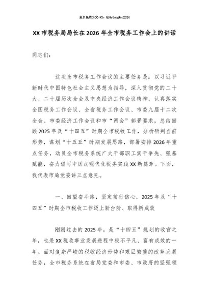 / XX市税务局局长在2026年全市税务工作会上的讲话3