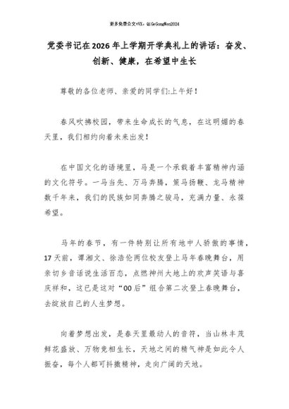 未生成预览图,长按二维码添加 党委书记在2026年上学期开学典礼上的讲话:奋发、创新、健康,在希望中生长 - 七哥-AI智库