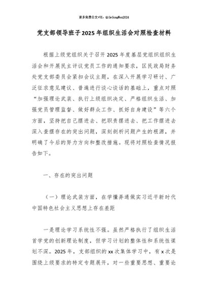 未生成预览图,长按二维码添加 党支部领导班子2025年组织生活会对照检查材料 - 七哥-AI智库