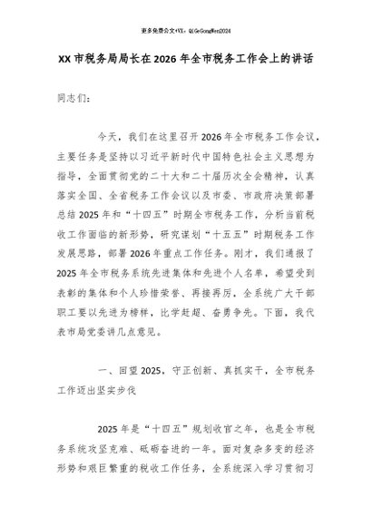 / XX市税务局局长在2026年全市税务工作会上的讲话2