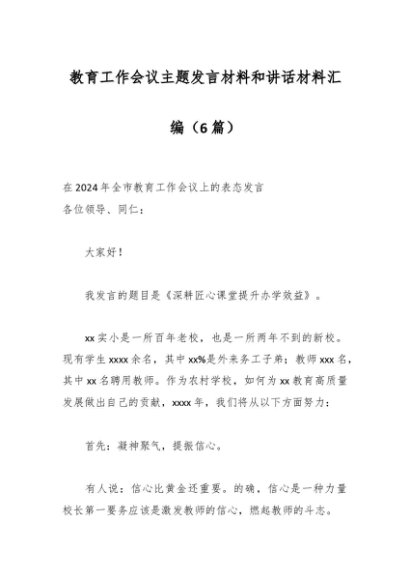 (6篇)教育工作会议主题发言材料和讲话材料汇编