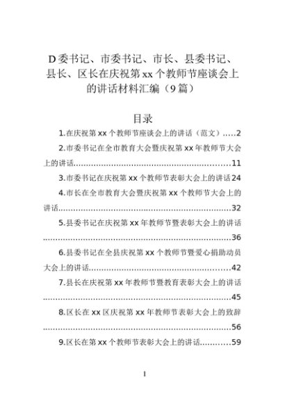 / (9篇)党委书记、市委书记、市长、县委书记、县长、区长在庆祝第xx个教师节座谈会上的讲话材料汇编