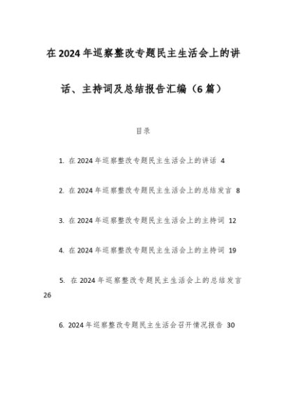 / (6篇)在2024年巡察整改专题民主生活会上的讲话、主持词及总结报告汇编