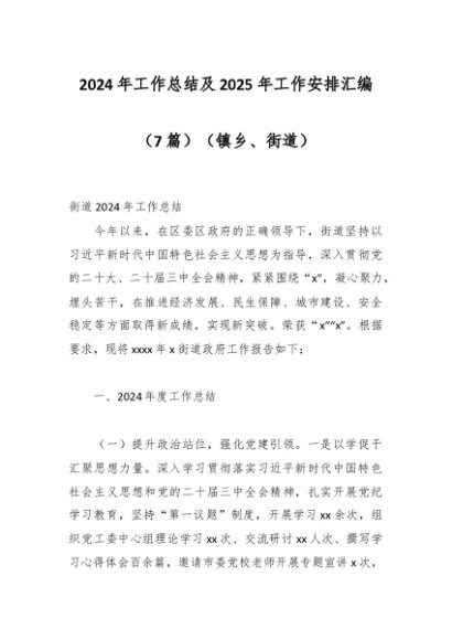 / (7篇)2024年工作总结及2025年工作安排汇编(镇乡、街道)