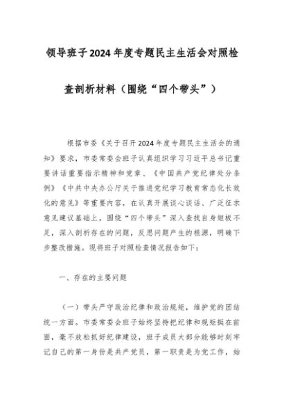 / 领导班子2024年度专题民主生活会对照检查剖析材料(围绕“四个带头”)