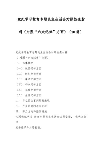 / (10篇)党纪学习教育专题民主生活会对照检查材料(对照“六大纪律”方面)