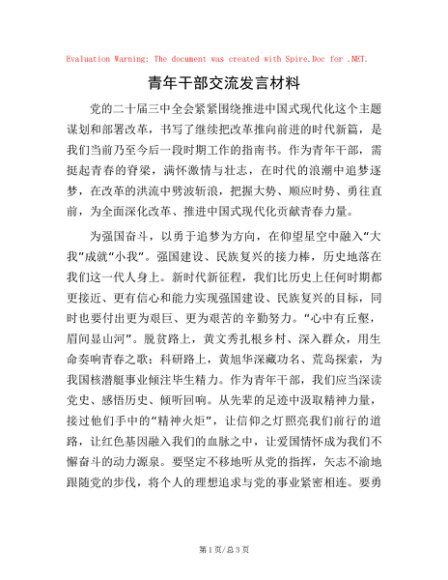 / 青年干部交流发言材料