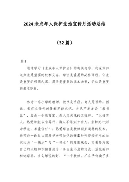 / (32篇)2024未成年人保护法治宣传月活动总结