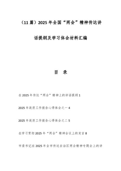 / (11篇)2025年全国“两会”精神传达讲话提纲及学习体会材料汇编