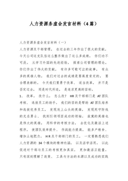 (4篇)人力资源务虚会发言材料