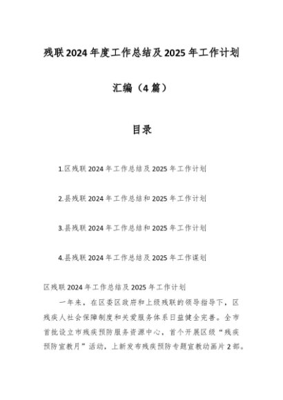 / (4篇)残联2024年度工作总结及2025年工作计划汇编