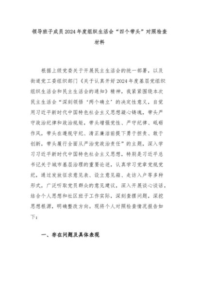 / 领导班子成员2024年度组织生活会“四个带头”对照检查材料