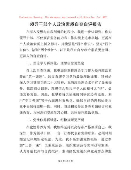 / 领导干部个人政治素质自查自评报告