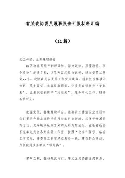 / (11篇)有关政协委员履职报告汇报材料汇编