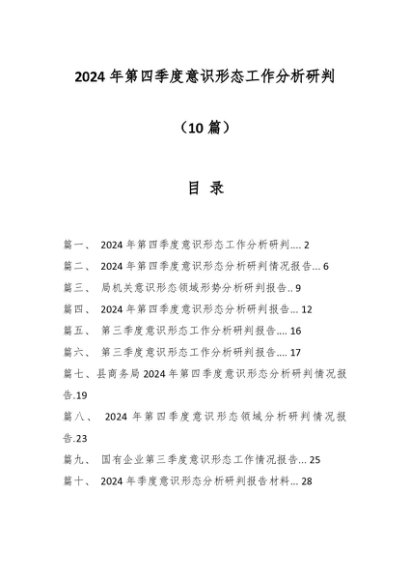 / (10篇)2024 年第四季度意识形态工作分析研判