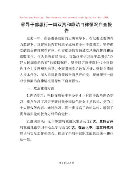 / 领导干部履行一岗双责和廉洁自律情况自查报告