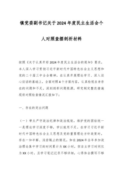 / 镇党委副书记关于2024年度民主生活会个人对照查摆剖析材料