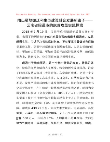 / 闯出易地搬迁和生态建设融合发展新路子——云南省昭通市的脱贫攻坚实践探索