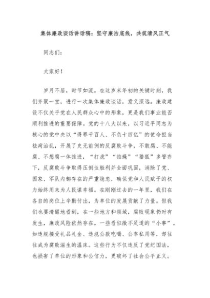 / 集体廉政谈话讲话稿:坚守廉洁底线,共筑清风正气